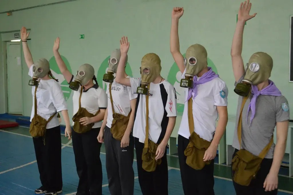— гражданская оборона (надевание противогаза на скорость);